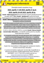 A MÁV-START Zrt. tájékoztatta az Igazgatóságot, hogy 2023. április 11-től 2023. április 21-ig és 2023. április 24-től 2023. április 30-ig az