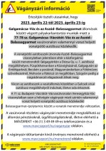 2023. április 22-től 2023. április 23-ig Galgamácsa–Vác és az Aszód–Balassagyarmat állomások között végzett pályakarbantartási munkák miatt a
