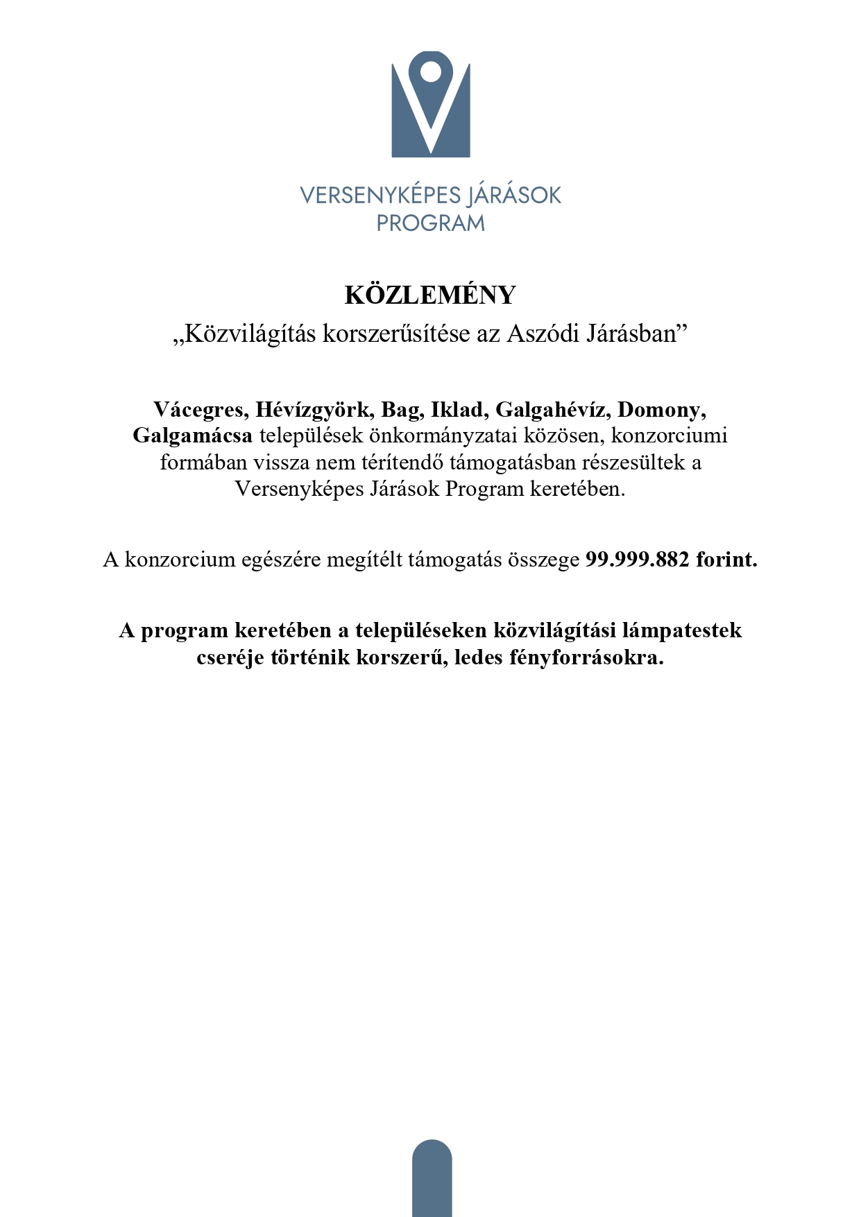 Közvilágítás korszerűsítése az Aszódi Járásban - Versenyképes Járások Program 2025-11-17 Hírek Megtekintések: 55