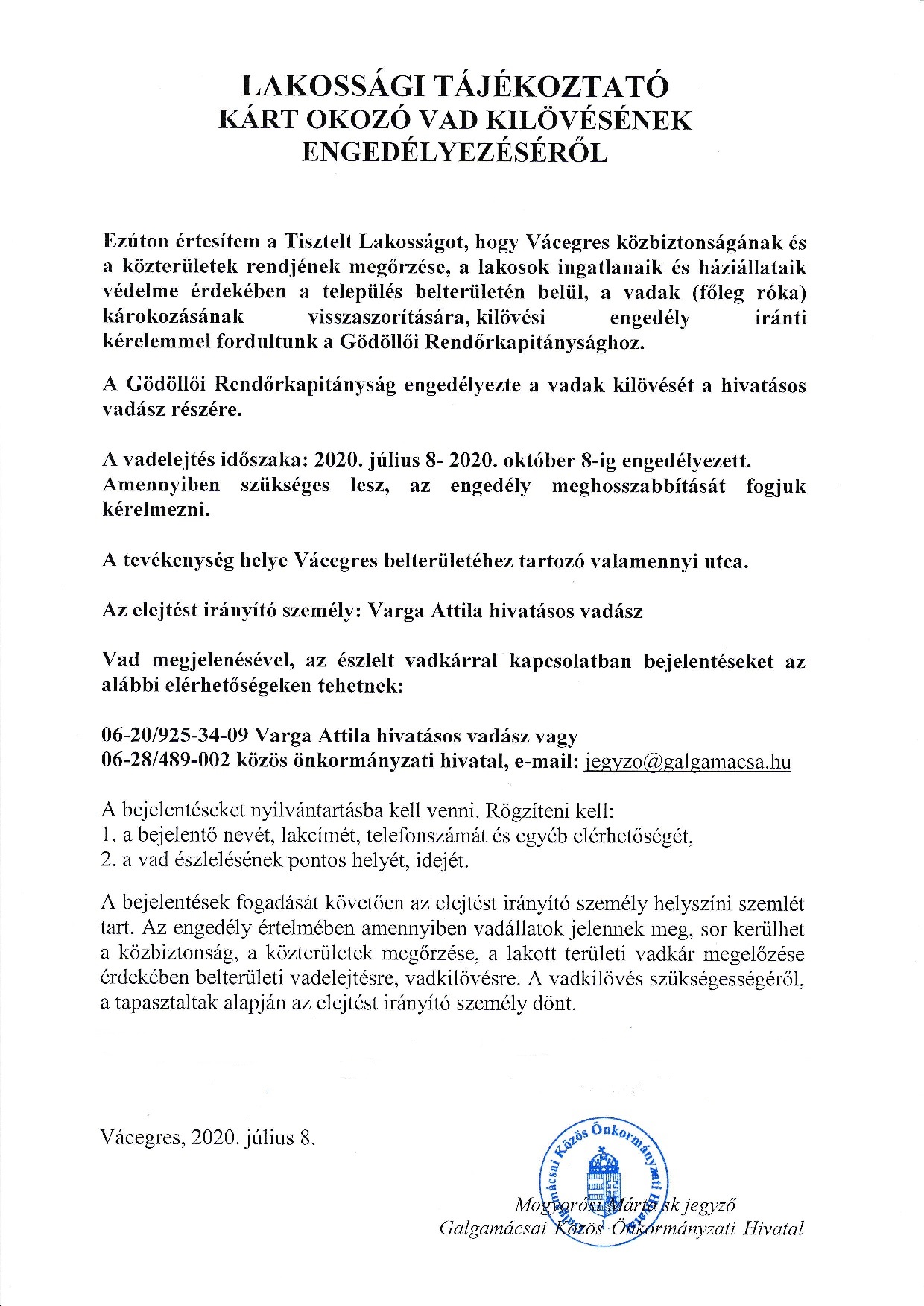 Tájékoztató - Kárt okozó vad kilövésének engedélyezéséről
