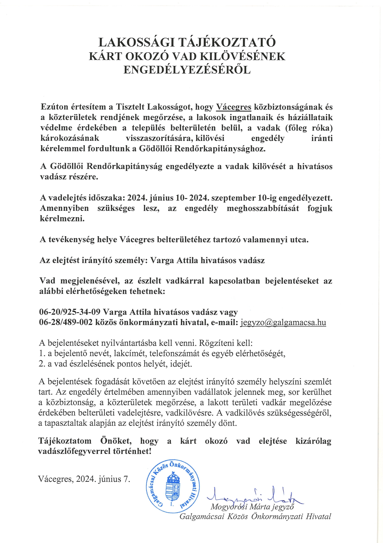 Vadkilövési tájékoztató