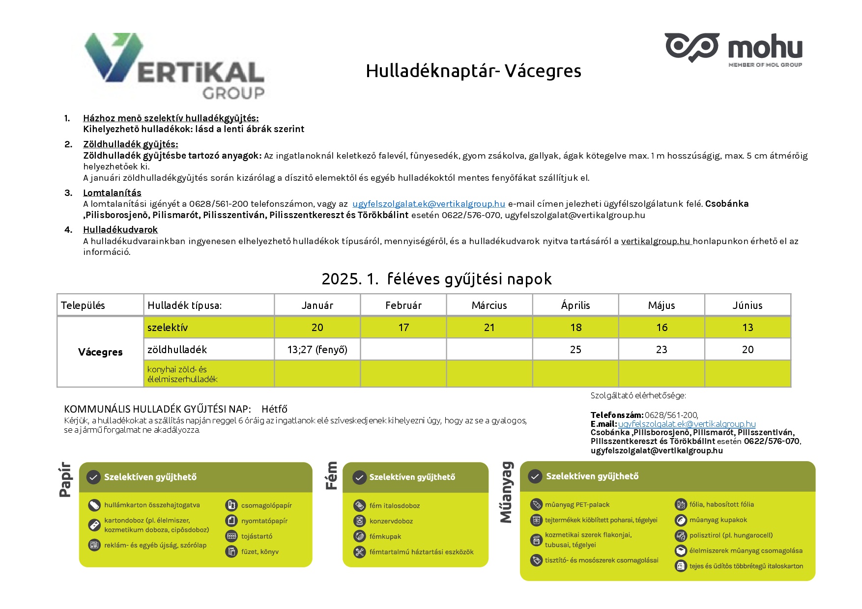 Tájékoztatjuk Önöket, hogy 2025.március 1 napjával járat optimalizáció miatt Vácegres hulladékgyűjtésében módosítást hajtottunk végre.